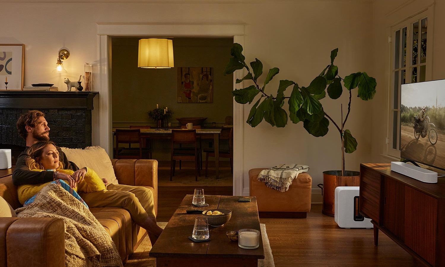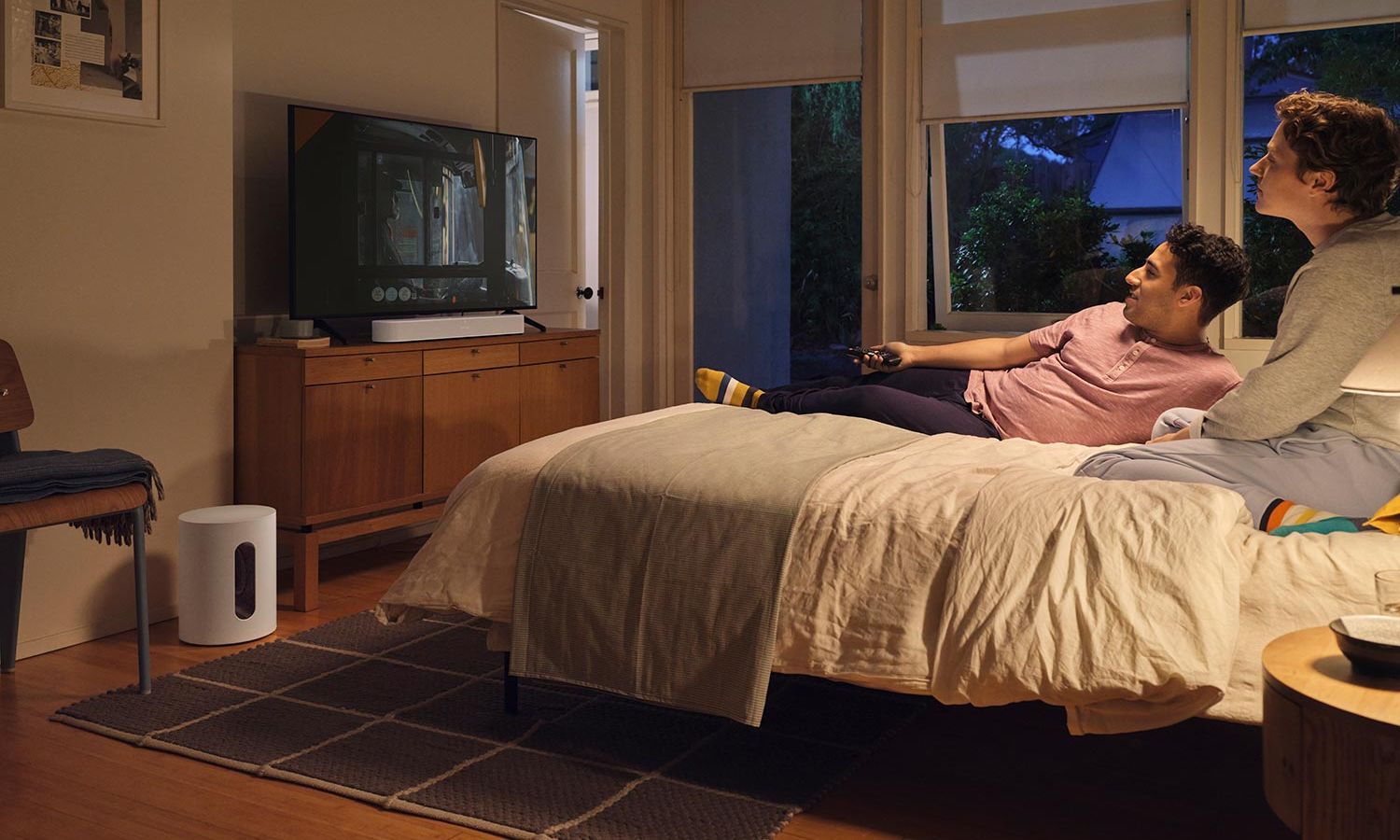 Enhance your movie and TV viewings by connecting a Sonos Sub and premium soundbar with rear surrounds for immersive sound.