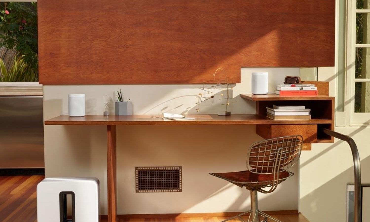 Enhance your workspace with the compact Sonos One for multi-room audio or pair two for a richer, bolder sound.